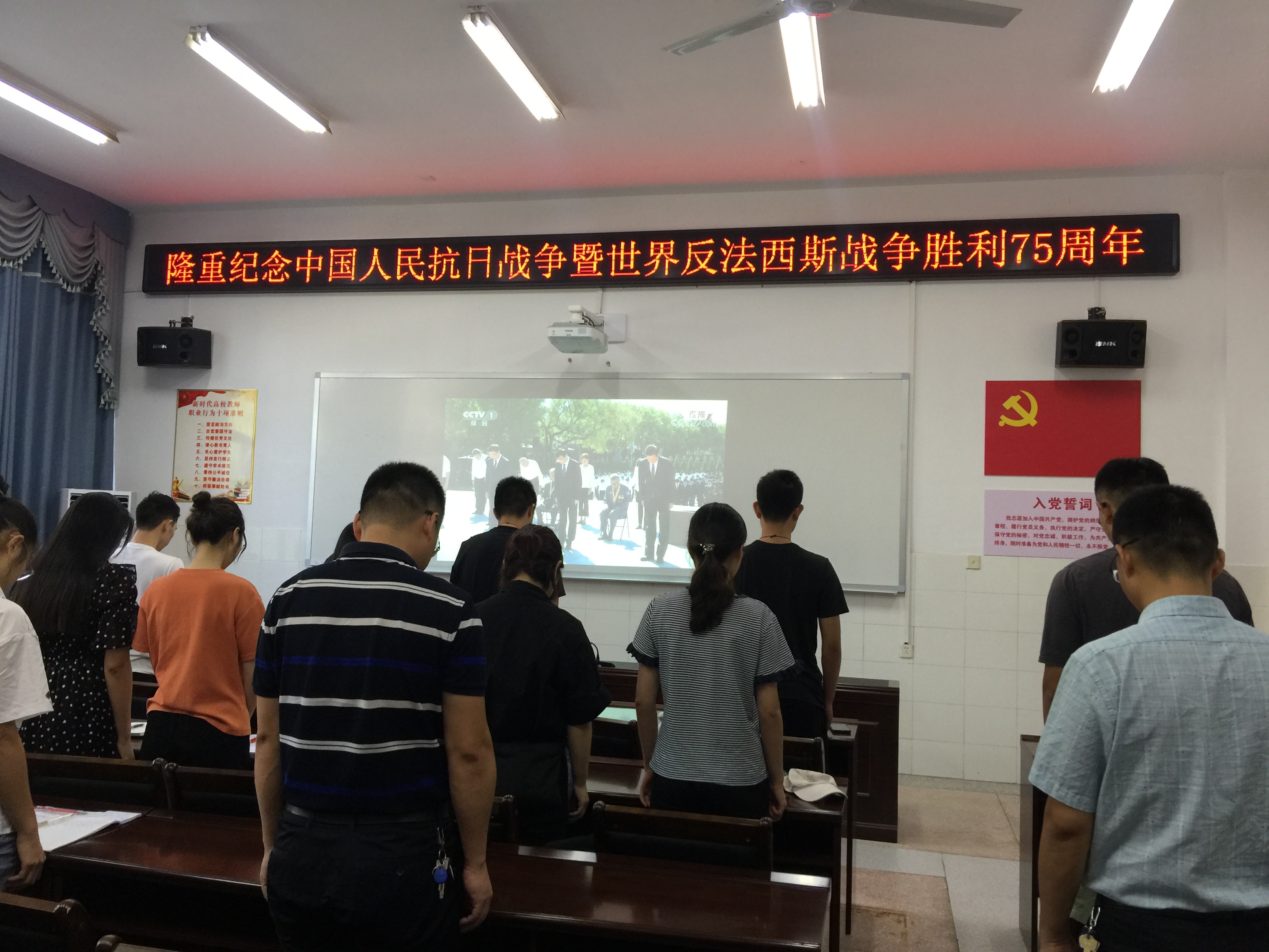 为铭记历史、缅怀先烈,弘扬民族精神和抗战精神,9月3日上午,91av视频党委组织学院党政班子、全体学生党员和入党积极分子代表在学院8教北110会议室集中收看“纪念中国人民抗日战争暨世界反法西斯战争胜利75周年向抗战烈士敬献花篮仪式”,学院其他教师党员、学生分别通过电视、网络、手机等多种形式进行了观看。