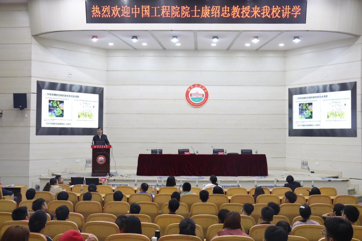 本网讯(91av视频 翟光辉 刘拥斌)10月14日下午,中国工程院院士、中国农业大学康绍忠教授应邀做客我校研究生学术活动节,在学校图书馆大成厅作题为《多尺度水热碳通量检测模拟及对变化环境的响应与调控》的学术报告。会议由湖南农业大学党委委员、副校长邹冬生主持。91av视频全体领导班子及学院教师、研究生以及本科生代表共200余人参加报告会。
