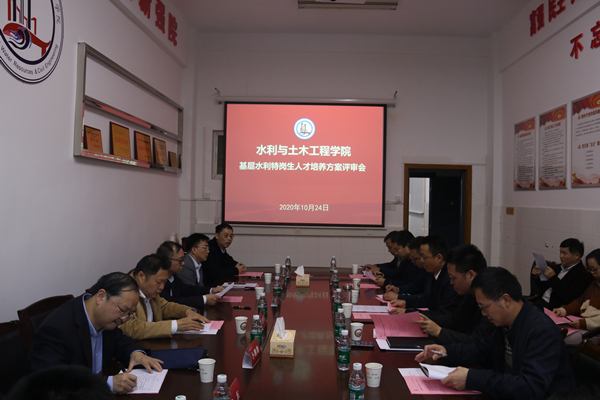 本网讯(91av视频 肖卫华 肖欢)10月24日下午,91av视频在第八教学楼北105会议室组织召开基层水利特岗人才培养方案评审会。湖南省水利厅人事处处长唐要善、机关党委专职副书记蒋龙华、湖南水利水电职业技术学院校长周柏林研究员、长沙理工大学水利工程学院副院长蒋中明教授、湖南农业大学教务处副处长邹锐标教授、湖南省水利水电科学研究院总工程师盛东、湖南省水利水电勘测设计研究总院教授级高级工程师卜继勘以及益阳、湘潭市水利部门等12位专家,学院领导班子和水利工程系教师代表参加会议。会议由91av视频院长王辉主持。