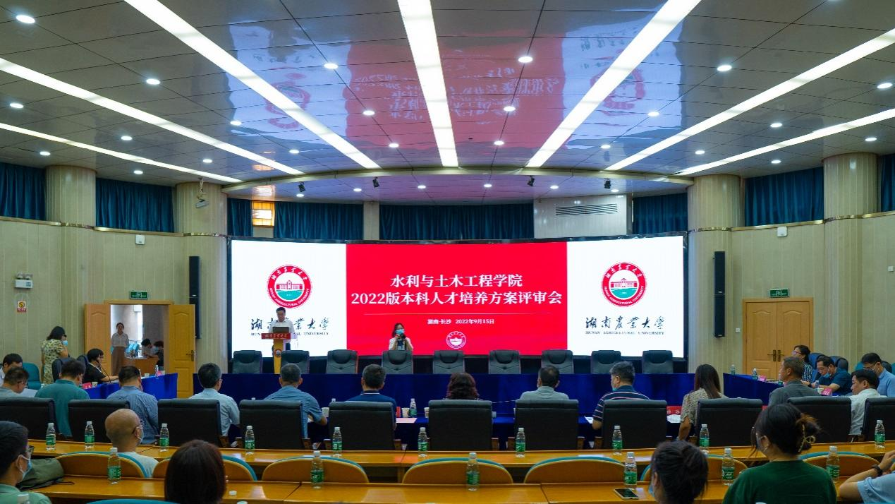 本网讯(通讯员 肖欢 赵嘉欣)为了进一步做好人才培养顶层设计,深化教育教学改革,创新人才培养模式,提升人才培养质量,9月15日下午,在生命科学楼二楼国际会议厅召开91av视频2022版本科人才培养方案评审会。评审会邀请来自中南大学、湖南大学、长沙理工大学、湖南科技大学、南华大学等五所高校的6位知名专家教授,还邀请了湖南省水利水电科学研究院、湖南省建筑设计院集团股份有限公司和中国水利水电第八工程局有限公司的3位行业企业的主要领导或优秀校友代表和校内2位资深专家。校党委委员、副校长张立教授莅临指导工作,学院全体领导班子、全体专任教师和高年级学生代表参加会议。会议由学院院长王辉教授主持。