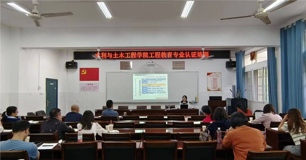 本网讯(通讯员 肖欢)为扎实推进我院工程教育专业认证工作,进一步做好专业认证的组织和准备工作,10月15日下午,我院特邀西安理工大学水利水电学院副院长周蓓蓓教授在八教南216会议室做了关于工程教育专业认证专题培训。学院院长王辉、副院长周锡玲、专业负责人、系主任、骨干教师代表以及教务主任参加会议,会议由教学副院长肖卫华主持。