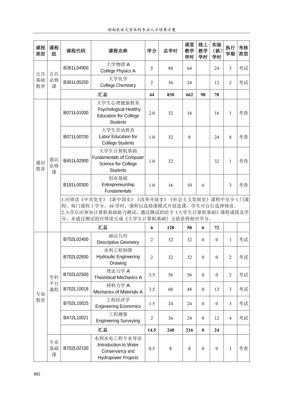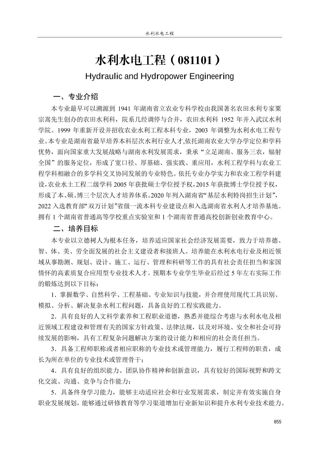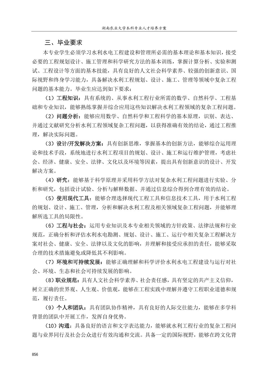 【培养方案】水利水电工程专业人才培养方案