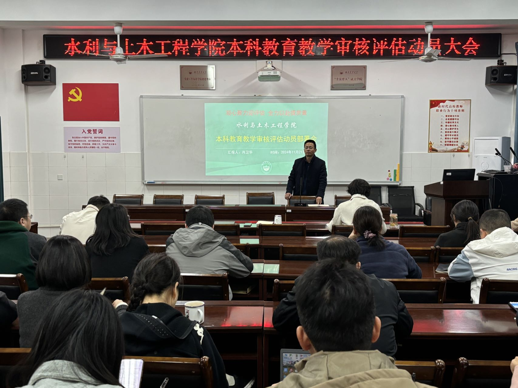 首先,院长王辉在会上强调了本科教育教学审核评估的重要性,他表示教育教学审核评估是深化教育教学改革、推进高质量发展的重要手段,全院教职员工要进一步深化对审核评估重要性的认识,要充分认识新一轮教育教学审核评估给学院带来的机遇和挑战。全院师生要统一思想,提高认知,将评建工作任务层层落实到人,做到全院教职工履行职责、认真完成各项工作,确保本科教育教学审核评估顺利进行。