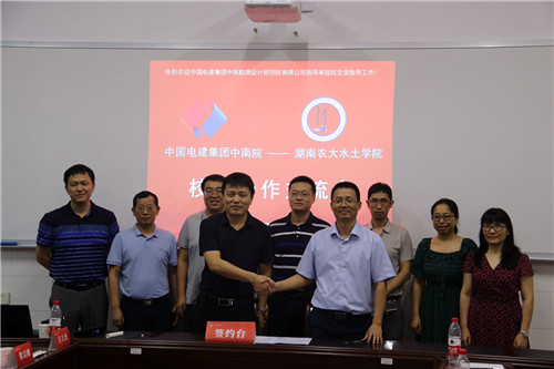 王辉院长首先介绍了学院发展历程、人才培养、学科特色和面临挑战的基本情况,希望双方加强产学研和人才培养合作。赵心畅主任就中国电建集团中南勘测设计研究院有限公司的主营业务、用人情况进行了简单介绍,各生产单位及子公司的领导分别介绍了业务情况及人才需求,纷纷表示希望跟学院在人才培养、校企合作、学生实习及就业创业等方面开展长期合作。与此同时,他们还结合行业对人才技能的新需求对我院三个专业的人才培养方案提出了宝贵的建议。会上,双方就人才培养、校企合作进行了深入交流。最后,胡德勇对中国电建集团中南院长期以来对学院办学尤其是毕业生的培养给予的关心表示衷心感谢,并指出双方地理位置相邻,学院专业人才培养与公司业务发展高度契合,在国家产教融合发展的大战略下,希望双方能够在人才培养、科学研究、工程实践等方面进一步加强合作交流,实现优势互补、资源共享、共赢发展的目标。在交流会上双方签订了《毕业生就业基地合作意向书》。