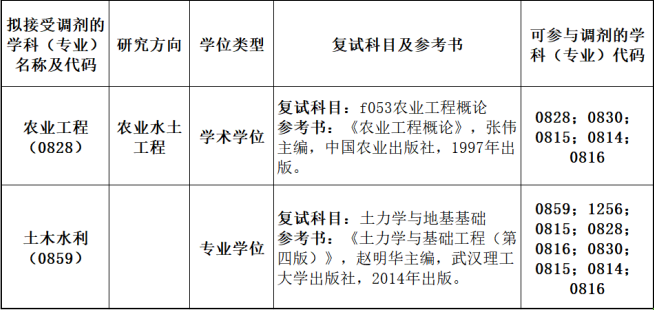 我院农业工程(代码0828,学硕)和土木水利(代码0859,专硕)目前有少量招生名额可供调剂,有调剂意愿的考生须通过中国研究生招生信息网的“全国硕士生招生调剂服务系统”进行。请各位考生留意以下重要事项: