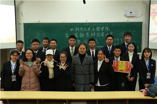 颁奖典礼环节,学工组邹亚老师与辩论队队长王安琪对本次比赛进行总结点评。对辩手们的优秀表现予以肯定,同时,指出了比赛中各辩手存在的问题,并提出了建议最后,主持人宣布比赛结果,土木一班赢得冠军,工管一班获得亚军,管一班许佳妮同学获得“最佳辩手”称号。邹亚老师为参赛选手颁奖并合影留念