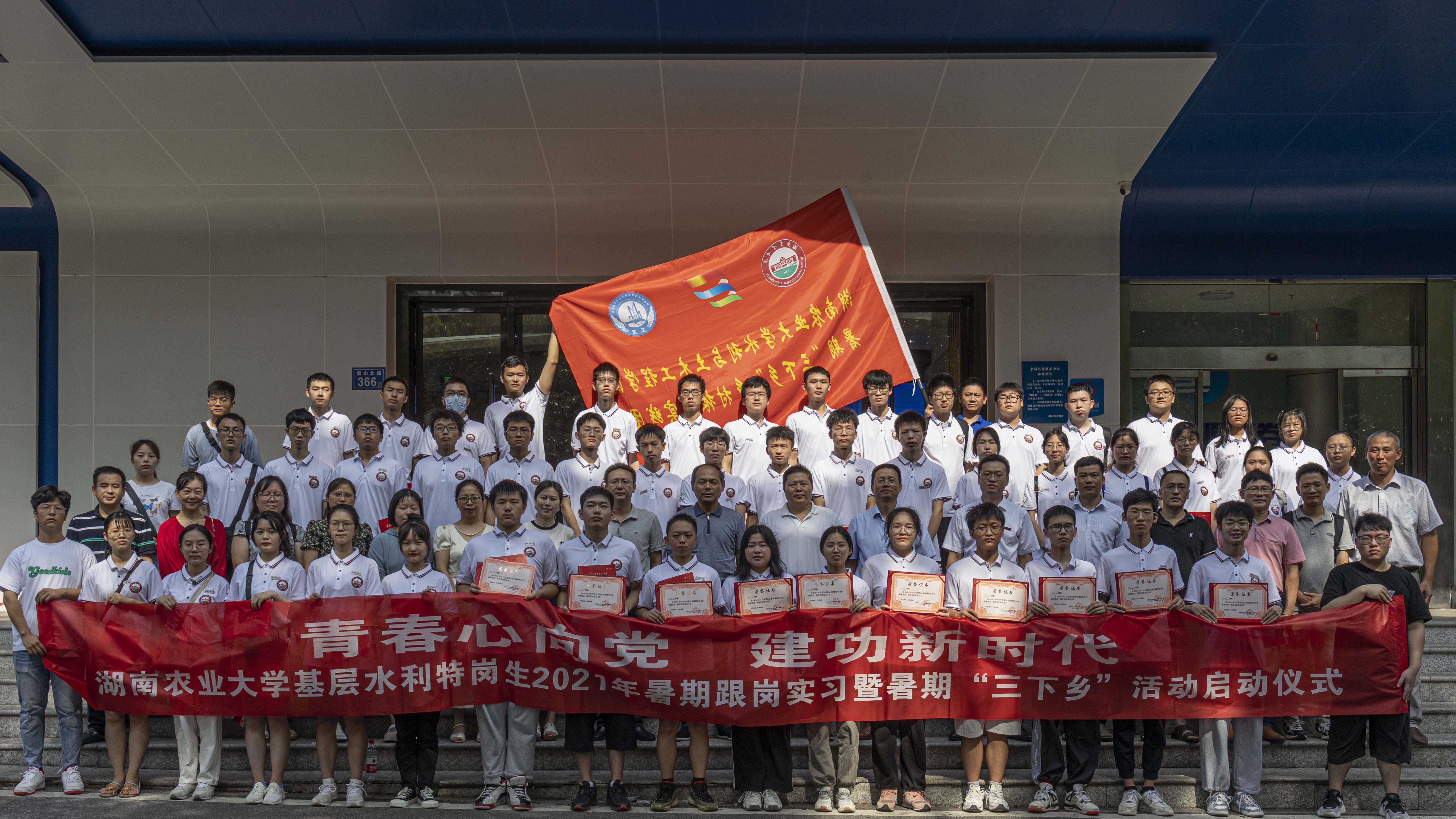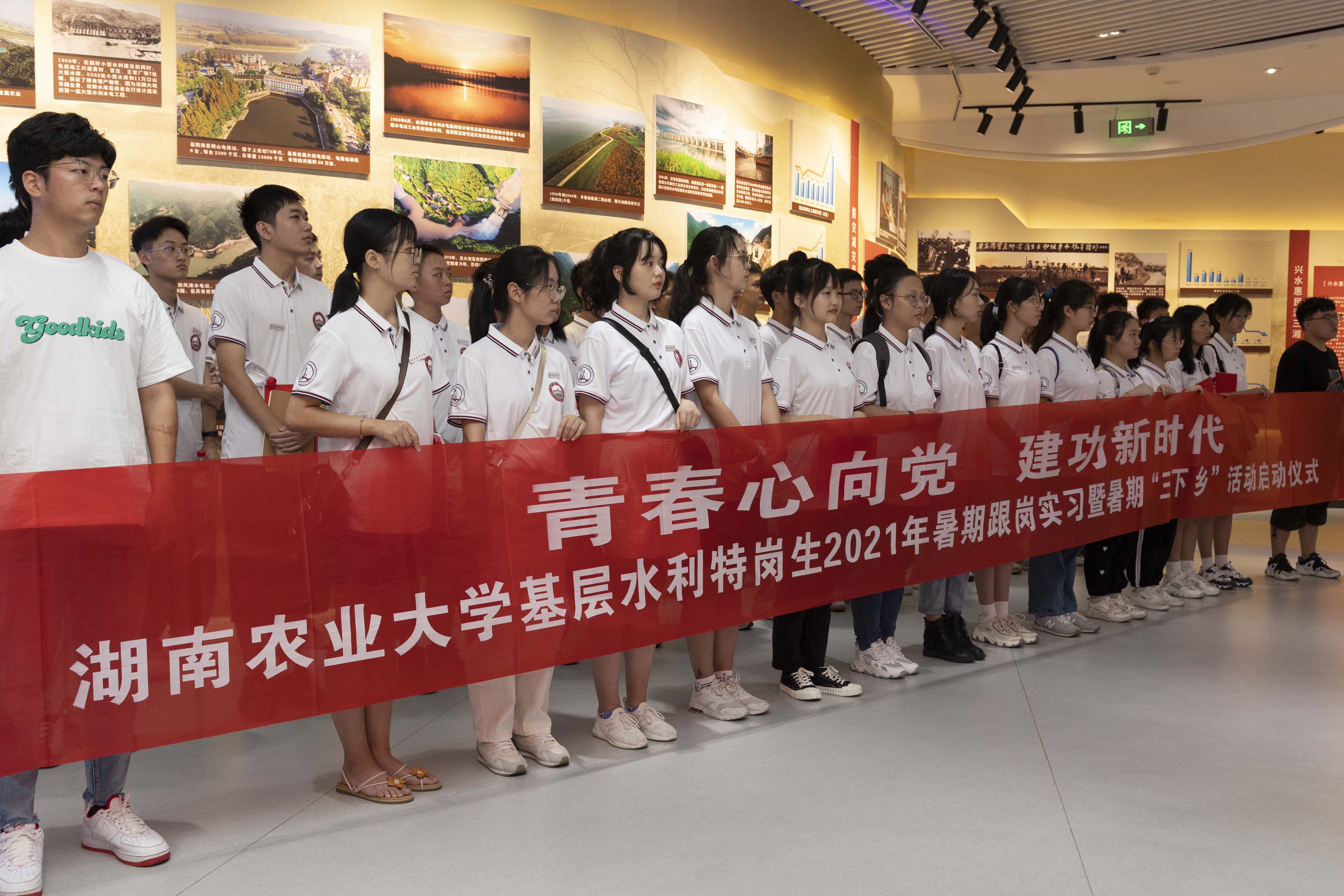 本网讯(通讯员 翟光辉)7月16日上午,湖南农业大学首届基层水利特岗生2021年暑期跟岗实习暨“三下乡”活动启动仪式在湖南省水利科普展示中心举行。湖南省水利厅党组副书记、副厅长钟再群及人事处处长唐要善、副处长吕珈,学校党委委员、副校长兰勇出席启动仪式,91av视频班子成员、教师代表和全体水利特岗生参加启动仪式。仪式由91av视频党委书记胡德勇主持。