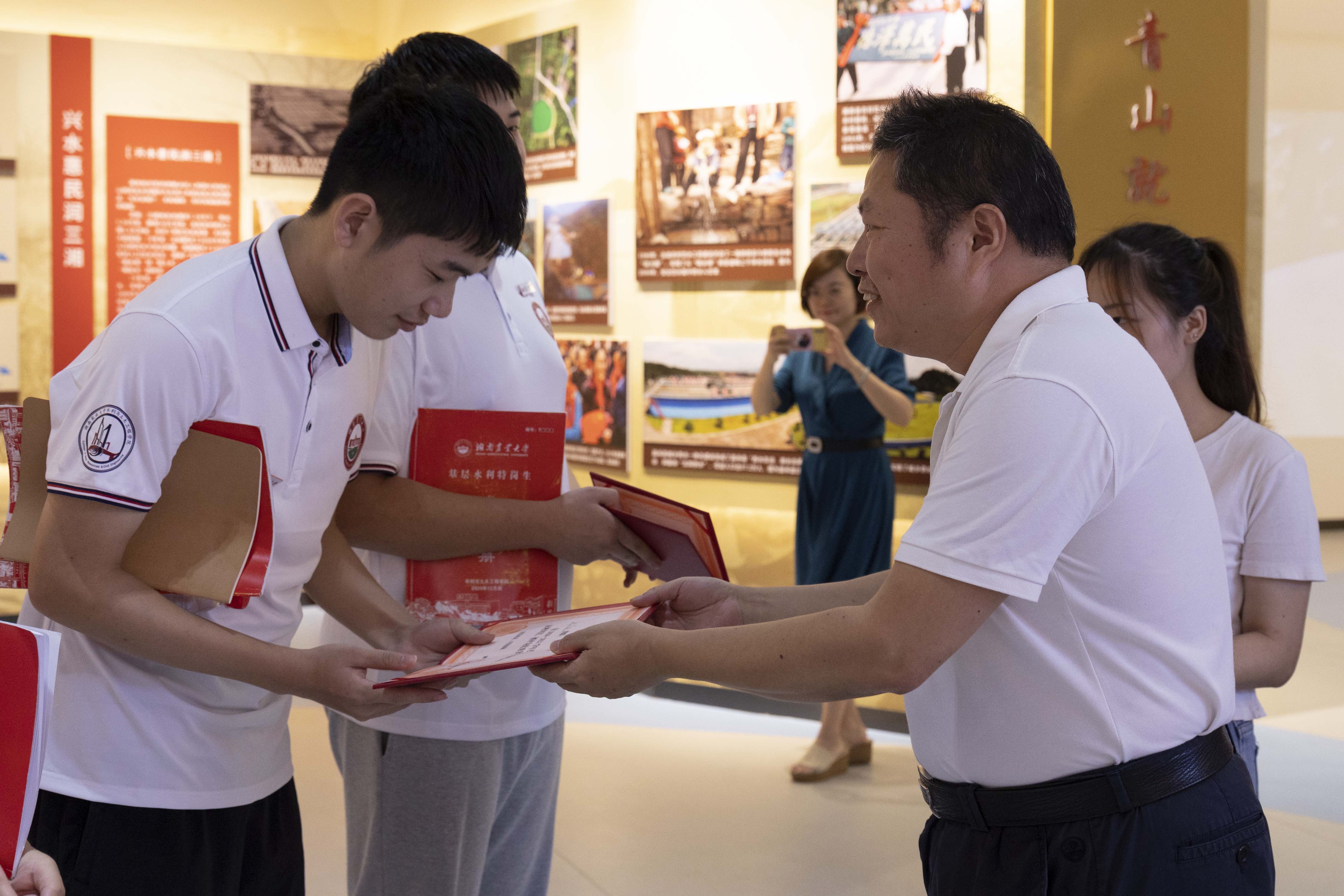 91av视频王辉院长首先宣读表彰决定,对10名在2020年寒假实习期间优秀学生进行表彰,唐要善处长代表省水利厅一一为他们颁发了荣誉证书。