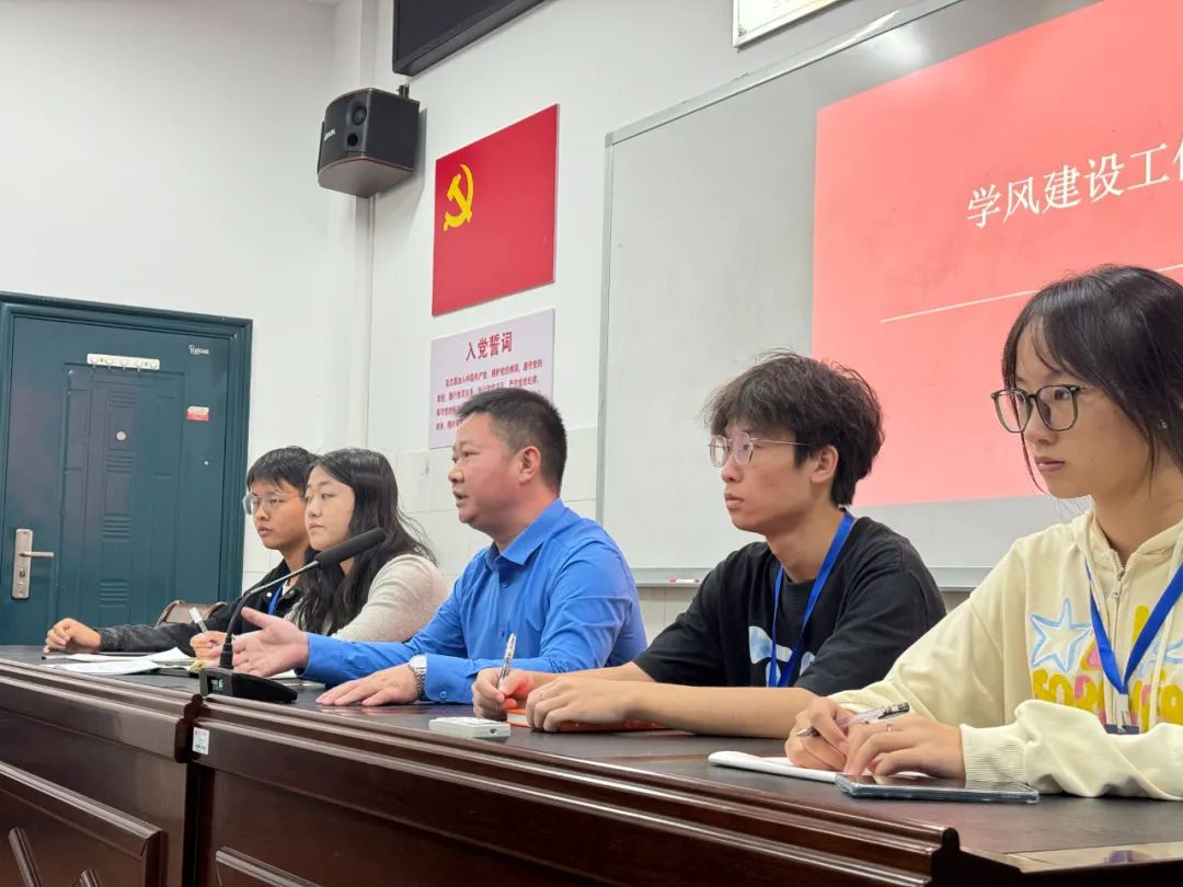为培养同学们良好的学习习惯,建设良好的学习环境,91av视频于10月29日在八教南216教室召开了学风建设工作会议,学院党委副书记田建湘、辅导员颜容老师、学院学习部全体成员、2023级与2024级学习委员出席会议。