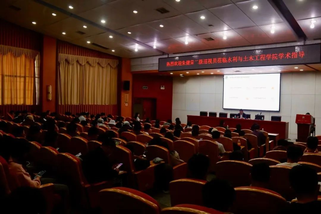 朱健荣以“奋力拼搏 砥砺前行——为乡村振兴提供可靠水安全保障”为题,结合个人科研工作经历,分享了在科研探索道路上的心得感悟。他指出“科学成就离不开精神支撑”,从致力于科学救国的艰辛历程,到迈向科技强国的辉煌征程,科学家精神始终是不可或缺的核心力量,爱国是科学家精神的底色,要面向国家重大需求做纯粹科研人。