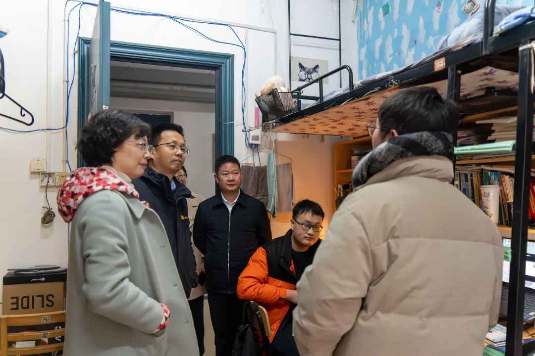 走访过程中,老师们深入寝室,仔细检查了宿舍的卫生条件与安全设施,还亲切地与同学们交流,详细询问了同学们的假期生活、新学期的学习规划以及当前遇到的困惑和需求,并鼓励同学们要做好职业规划,积极参与各类实践活动,努力提升自己的综合素质和能力。