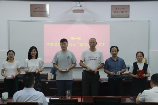 会上,李颂明组织员为上半年入党的党员们颁发“政治生日”贺卡,党委副书记田建湘宣读91av视频2022-2023学年度先进集体和优秀个人表彰名单,号召学院各基层组织、全院师生员工和共产党员以先进为榜样,在学院建设和发展中作出新的贡献!