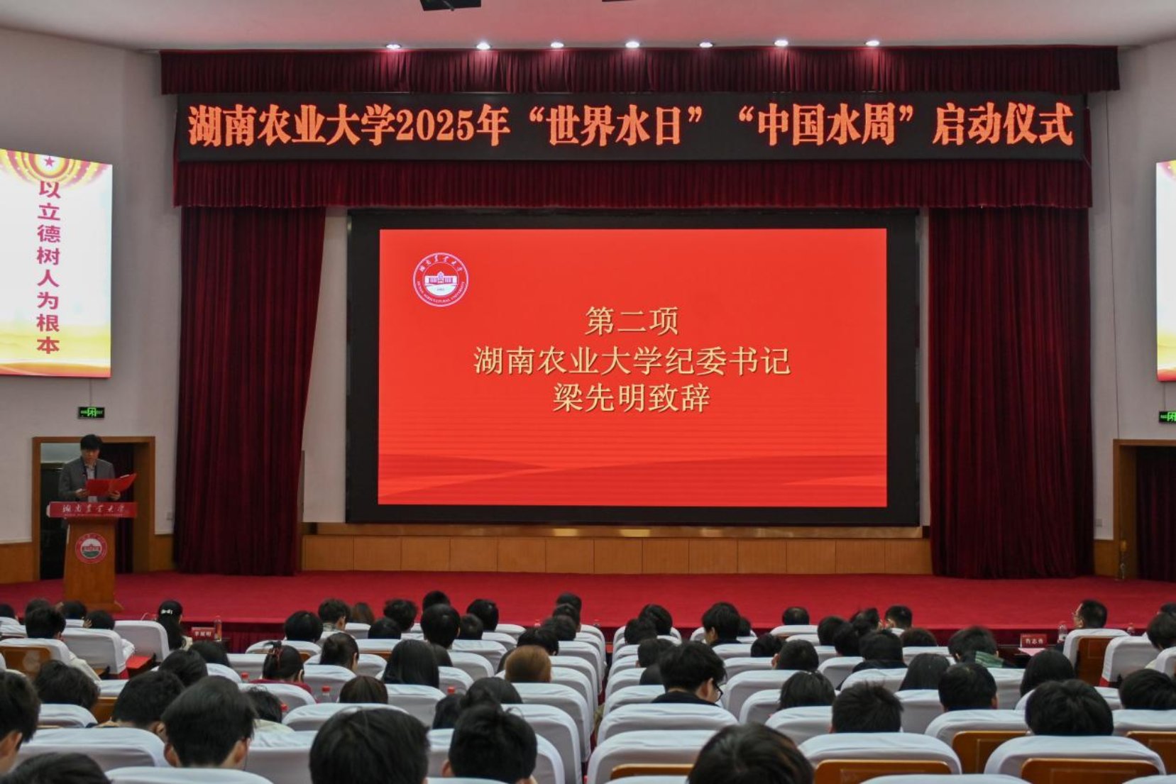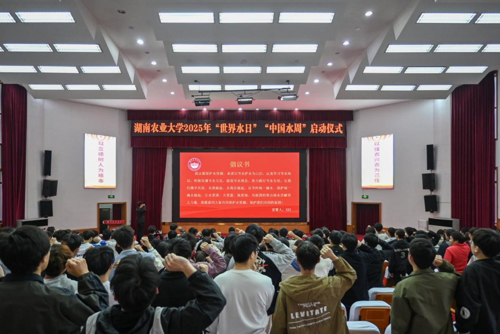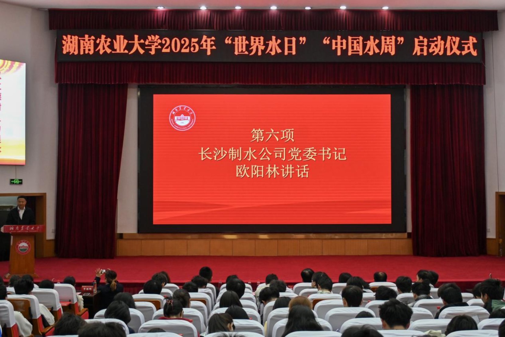 (通讯员 阳华 张佳明)3月24日上午,湖南农业大学修业讲堂隆重举行2025年"世界水日""中国水周"系列活动启动仪式。本次以"守护生命之源,共建生态未来"为主题的活动,由校纪委书记梁先明、长沙市制水公司党委书记欧阳林、长沙供水公司党委委员龙水清及校团委、后勤部门负责人出席,200余名师生代表参与,91av视频党委书记唐琳主持。