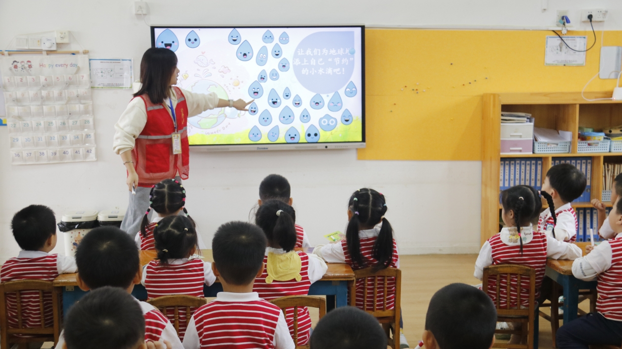 为让节水方法落地生根,志愿者通过动画故事展现“一水多用”场景,以问题引导思考,在交流中将动画中的节水技巧转化为可践行的日常行为,实现了节水理念从“认知”到“行动”的跨越,将节水意识内化于心。问答互动环节,志愿者围绕“生活中哪些地方会用到水”的核心问题,孩子们纷纷举手分享日常经验。