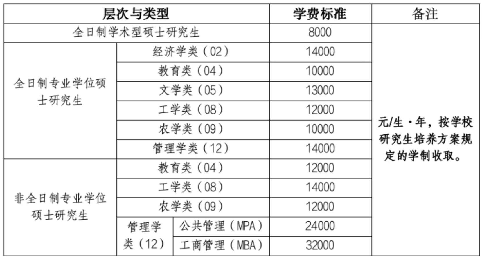 我校各类型研究生均需缴纳学费,学费收取标准如下,如有变动,按省发改委最新文件执行: