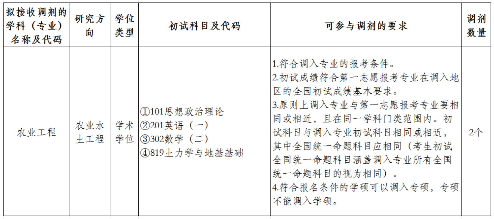我院农业工程(代码0828,学硕)目前有招生名额可供调剂,有调剂意愿的考生须通过中国研究生招生信息网的“全国硕士生招生调剂服务系统”进行。请各位考生留意以下重要事项: